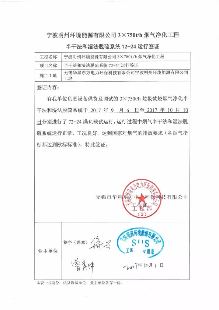 我公司中標承建的寧波鄞州3x750t/d爐排爐煙氣凈化工程于2017年10月10日通過72+24小時試運行,該工程由寧波明州環(huán)境能源有限公司予以建設(shè),總投資14億元,占地面積124.1畝,設(shè)計總規(guī)模日處理生活垃圾2250噸。煙氣凈化采用SNCR(氨水)+半干反應塔+ 干法(Ca(OH)2)+ 活性炭噴射 + 袋式除塵器 + 蒸汽-煙氣再加熱器(SGH)+ SCR(氨水)+ 濕法(NaOH)+煙氣-煙氣換熱器(GGH)的凈化工藝,為我公司EP項目。